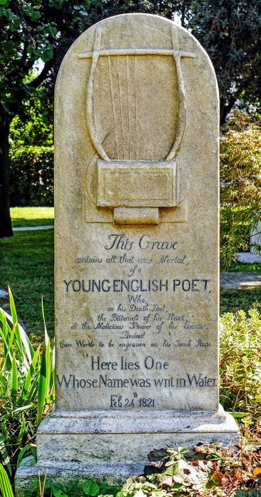 John Keats hakkında daha söylenecek çok şey var fakat bu yazı tabiri yerindeyse kısa bir bakış. Buna rağmen kısacık bir bakışta hayatta nelerin mümkün olduğunu bizlere gösteriyor, sonrasında kendisini sevgiyle anacak olan Lord Tennyson’ın “Ulysses” adlı şiirinde dediği gibi: “Hayatı dibine kadar içeceğim. (I will drink life to the lees.)” Keats de edebi açıdan öyle yapmışa benziyor. Öyle ki, yirmi beş yaşında öldüğü hesaba katıldığında, İngiliz Edebiyatının devleri Shakespeare, Chaucer ve Milton, onun yaşındayken onun kadar büyük başarılara imza atamamışlardı. Hastalığından dolayı yakın arkadaşı ressam Joseph Severn ile birlikte Roma’ya taşınır. Roma’nın ılık havasının daha iyi geleceğini düşünür, 24 Şubat 1821’de orada ölür ve Vatikan Kilisesi’nin Katolik olmayan insanlara ayırdığı mezarlığa defnedilir. Arkadaşları, Keats’in isteği üzerine mezar taşına şu cümleyi yazarlar: “Burada adı suya yazılmış biri yatmaktadır. (Here lies One Whose Name was writ in Water.)” Kendisinin akıllarda kalmayacağına inanarak vefat ettiğini buradan anlayabiliyoruz.